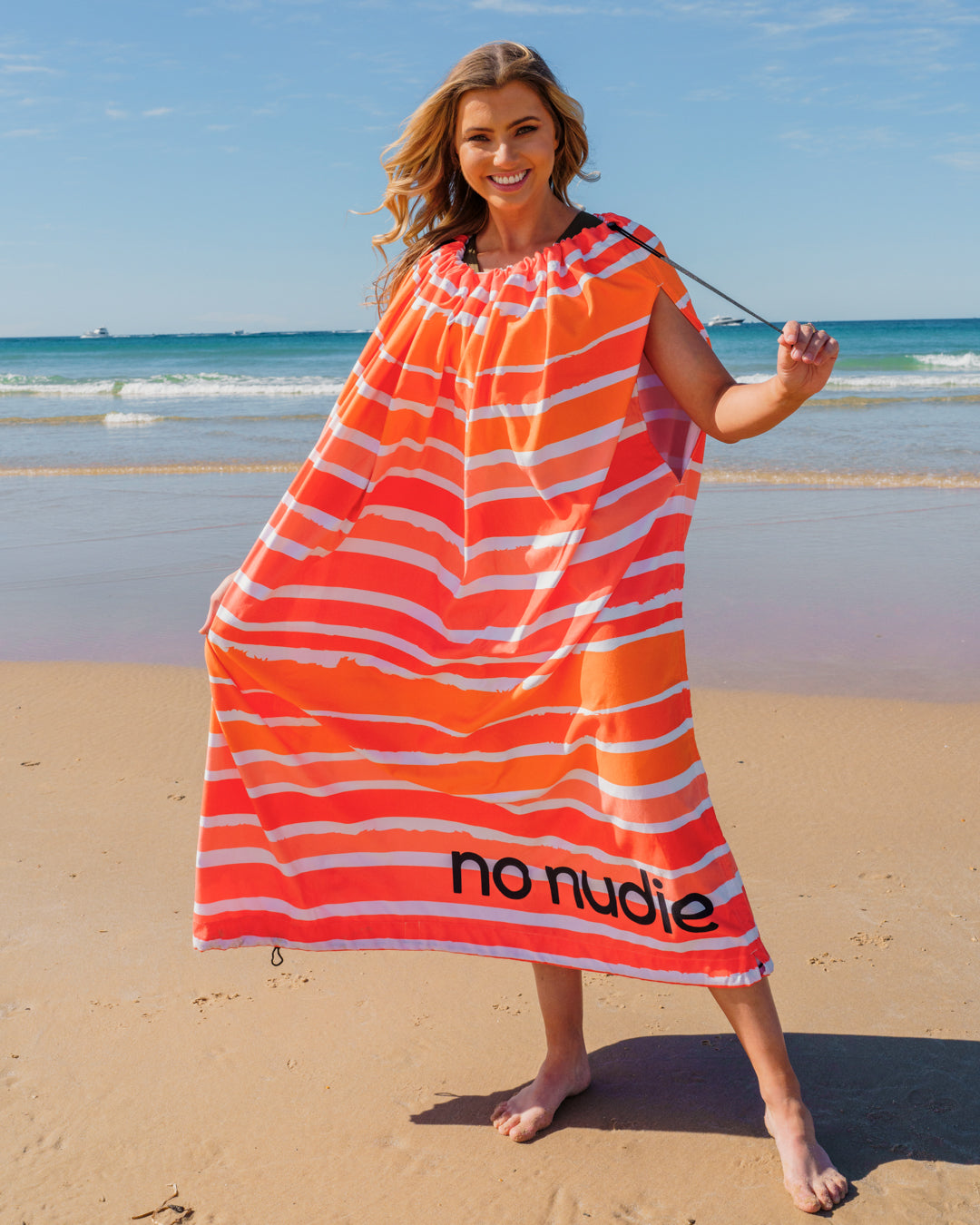 I am absolutely LOVING my no nudie towel! I love that I can easily get changed in it. Such a versatile purchase that will continue to be my first pick when I reach for a beach towel. The fabric is excellent, great quality, great feel. Everyone I go to the beach with always asks about this towel. I'll definitely be getting more